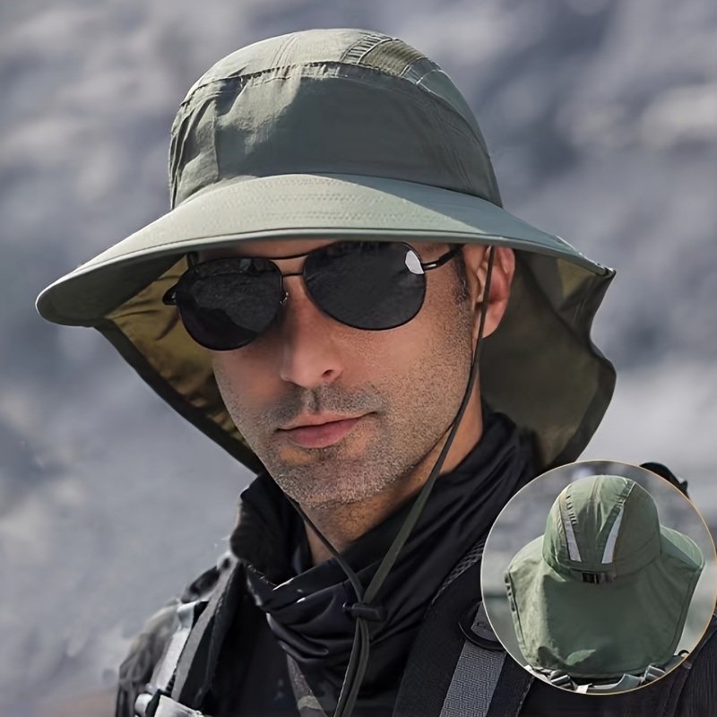 Wide Brim Sun Screen Hat With Neck Flap; Adjustable Waterproof Quick-drying Outdoor Hiking Fishing Cap For Men Women